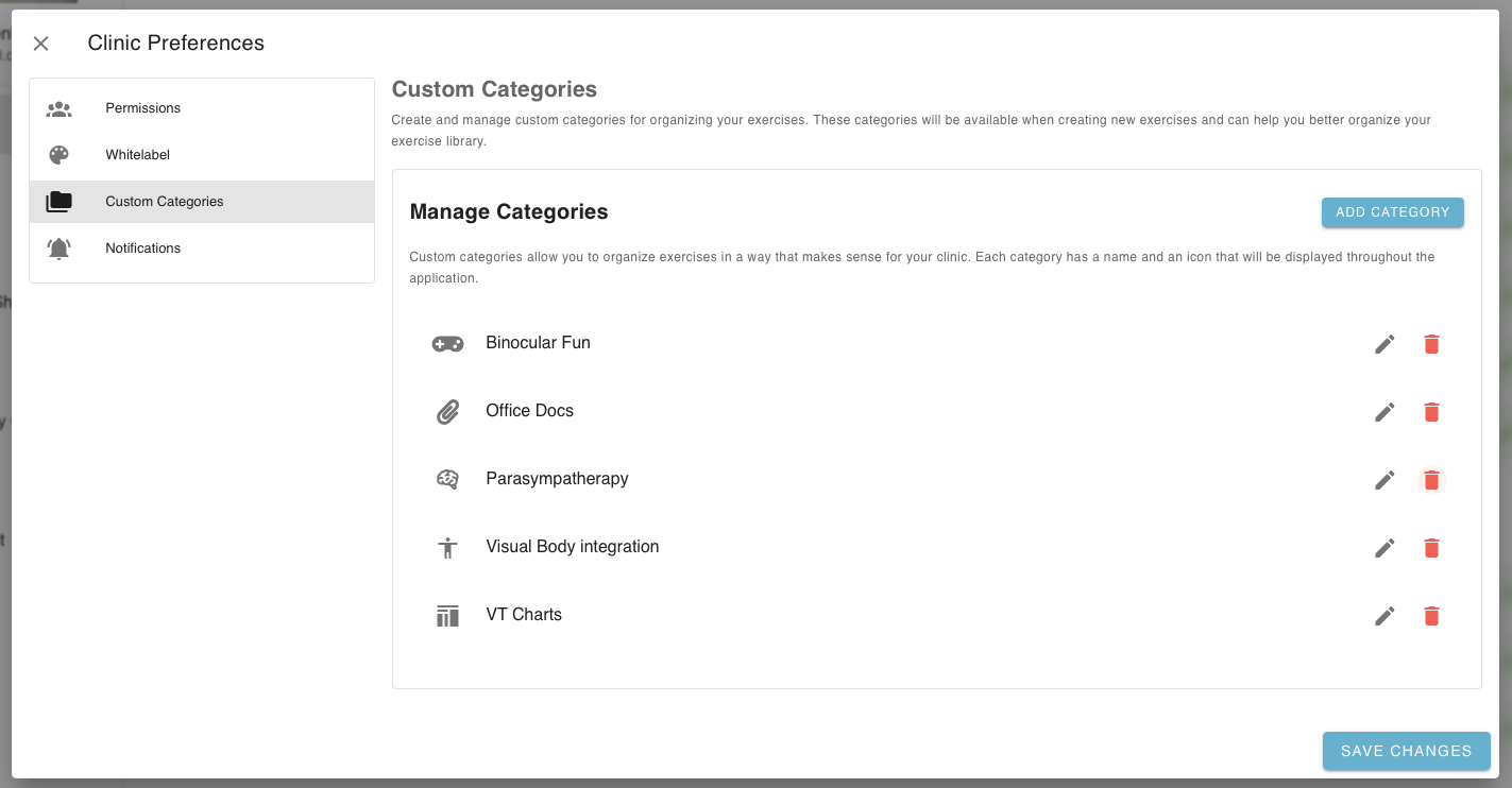 • Create and manage custom categories for organizing your clinic's vision therapy exercises.